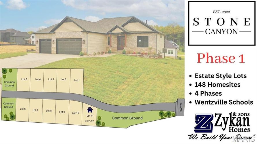 Welcome to Stone Canyon, a Zykan and Sons Homes Community in Foristell, MO. Here you’ll find many great floor plans to choose from all on amazing estate style homesites. All lots are a minimum of .33 acre (14,500+ sq/ft) and some are well over twice that size and many of them back to trees/woods...