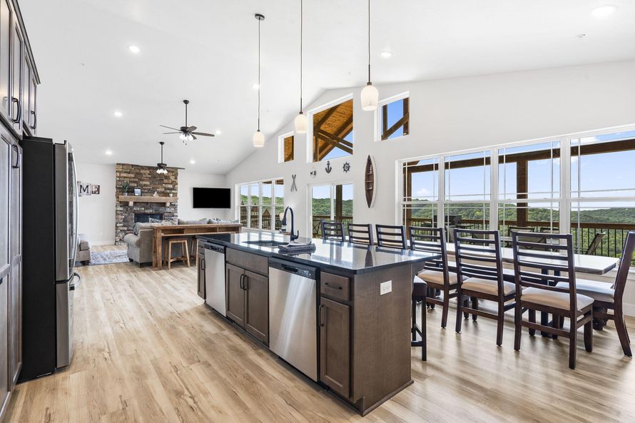 Crowne comfort! This 7-bedroom, 9-bathroom lodge comes fully furnished and turnkey ready to go. Nothing to do here but watch it happen! Features a fantastic view of Table Rock Lake, plus numerous special upgrades, including tile showers, a stone fireplace extending to the ceiling, wiring for a hot...