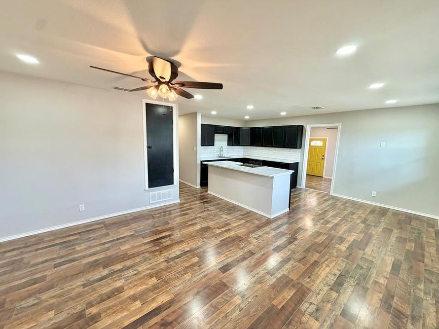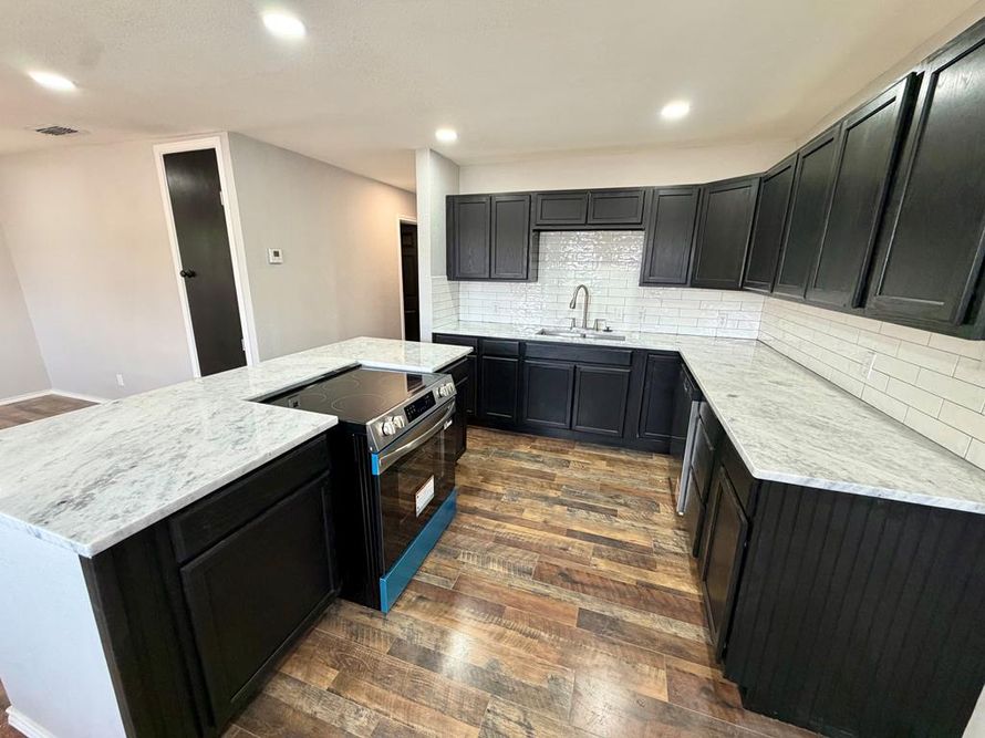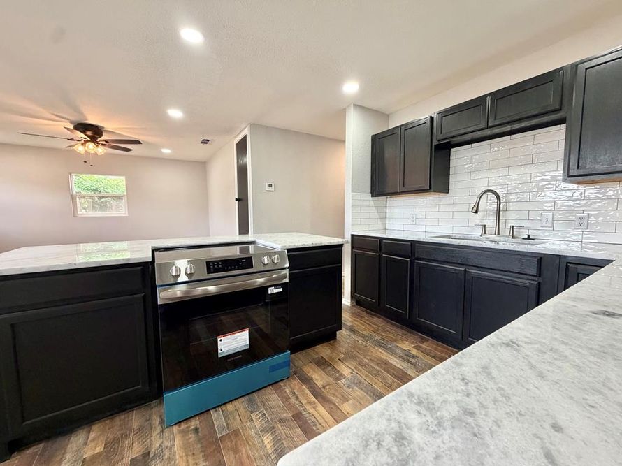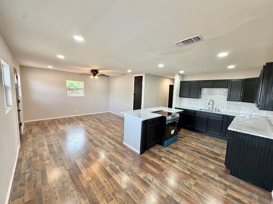 Beautifully remodeled home in quiet neighborhood with very little through-traffic! Tons of windows for natural light, open kitchen and living spaces with luxury vinyl flooring throughout, gorgeous kitchen with quarts counters, large island, tons of cabinets, 4 bedrooms and 2 completely remodeled...