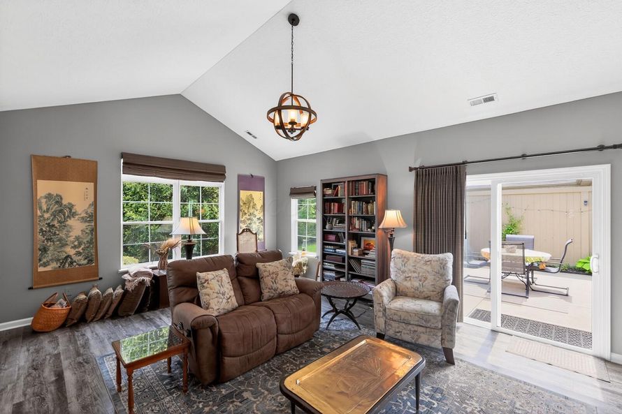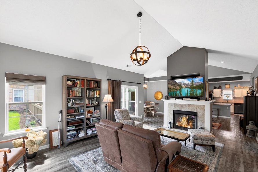 Easy care living at its finest. Luxury ranch condo located within Colonial Woods. This beautiful condo offers 2 bedrooms plus a den. 2 Full baths. Open great room floor plan with living room, dining area, hearth room and highlighted by a gas log fireplace. Stunning white cabinet filled kitchen...