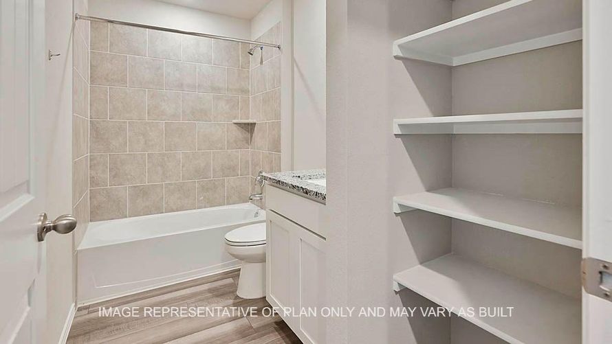 The Texas Cali is a single-story, 4-bedroom, 2-bathroom home that features approximately 1,796 square feet of living space. The long foyer with an entry coat closet leads to the open concept kitchen, living room and breakfast area. The kitchen includes a breakfast bar and a corner pantry. The main...