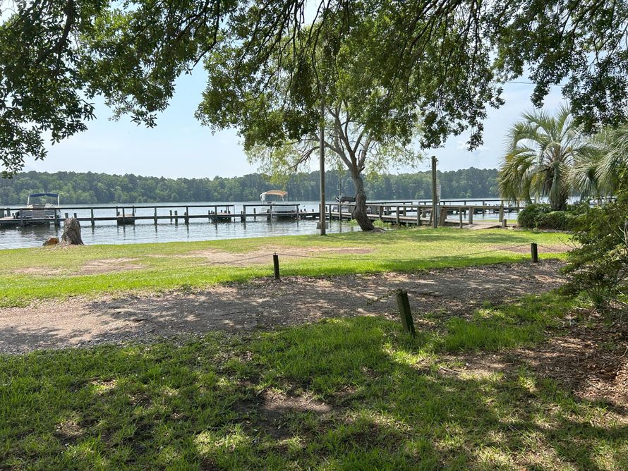 Calling all fishermen! This is your perfect getaway! Walk right out your door to the docks at Goat Island. Taw Caw Creek is looking at you on Lake Marion. No need to drive any where. Sitting among beautiful Live Oak Trees. Nothing but a golf cart path between you and the waterfront. Full house...