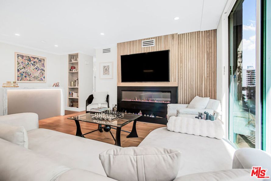 Centrally located near UCLA, Beverly Hills, Century City, and Westwood, this quiet, front-facing corner unit is filled with natural light and showcases sweeping city views. Thoughtfully renovated, it features quartz countertops, a sleek electric fireplace, a custom-built bar, smart home...