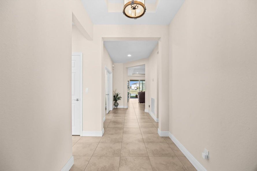 Great home in Vizcaya Falls neighborhood with wide lake views from covered lanai. The foyer leads you into the great room with dining area and open to the kitchen. Large island with sink and breakfast bar, granite countertops, stainless steel appliances, walk-in pantry and plenty of cabinetry...