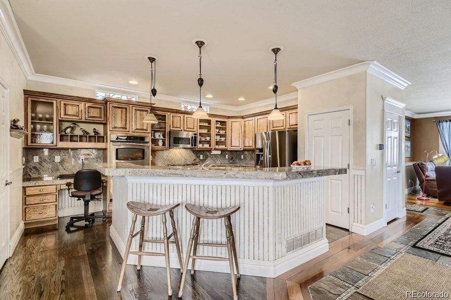 WELCOME HOME TO BRADBURY RANCH! YOU WILL FALL IN LOVE WITH THE EXQUISITE FINISHES THROUGHOUT THIS HOUSE! FROM TOP TO BOTTOM, THIS HOUSE HAS BEEN UPGRADED! LARGE KITCHEN WHICH OVERLOOKS WELCOMING PATIO! GRANITE AND SS APP! DOUBLE OVENS! BEAUTIFUL HARDWOOD FLOORS THROUGHOUT! AMAZING KITCHEN CABINETRY...