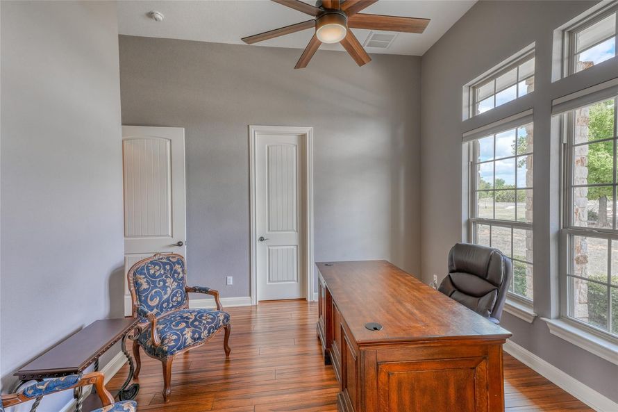 Nestled within the highly sought-after gated community of Eagles Nest. This lovely home situated on +/- 2.5 acres with Hill Country Views, a 3-car garage, an open floor plan, 3 bedrooms, office (or 4th bedroom) and a large upstairs bonus room. Double doors with etched glass welcome you into the...