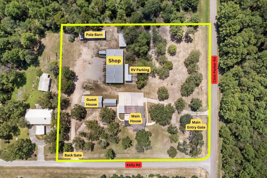 FRESHLY PAINTED - APRIL 2025. Beautifully maintained four-acre estate featuring TWO homes, 5000 sq. ft. shop, large pavilion, extensive concrete drive and parking spaces, a four-car carport with extra high clearance, a 60x20 covered shop with an open front, an 80x20 pole barn, and large concrete...