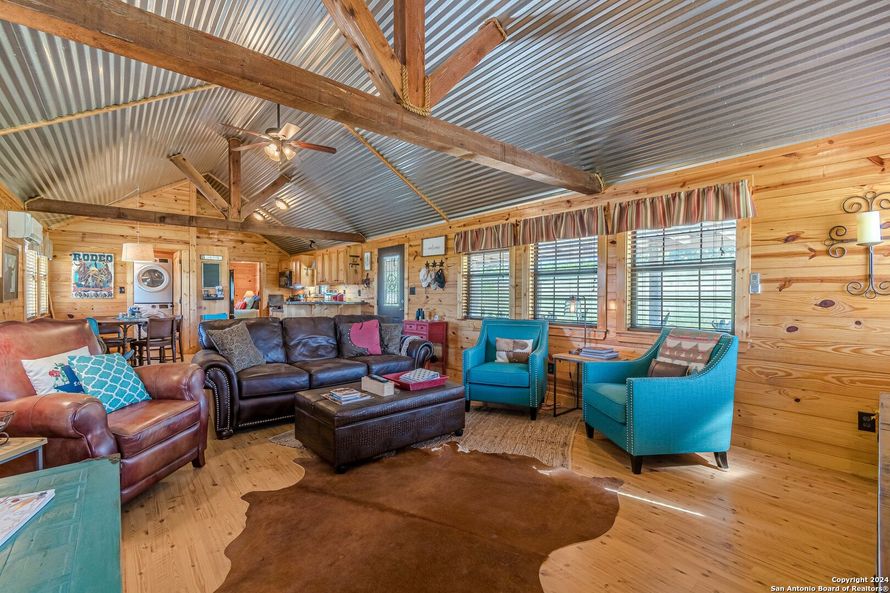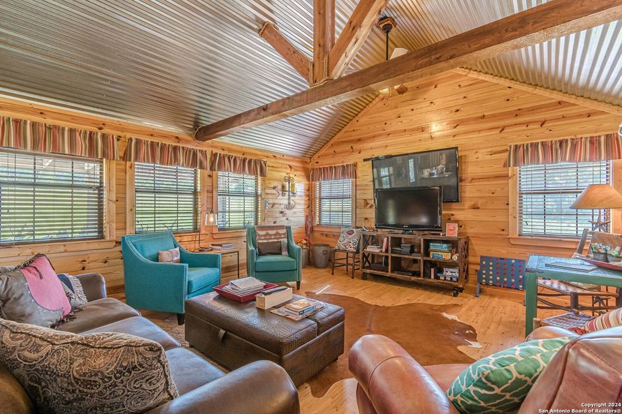 If you have been looking to own a piece of the hill country- this is it- upscale designed cottage/cabin on about 15 acres featuring pure bliss of long range views, quiet setting, oversized covered front and back porches, hot tub, outside entertainers' dream with built in bar area, -Huge detached...