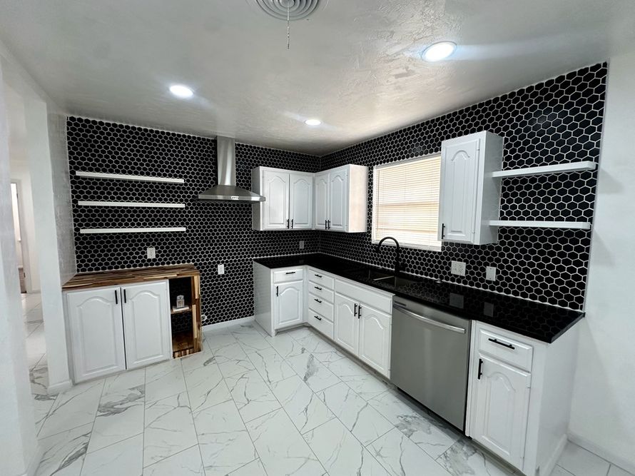 Stunning remodel on this 4 bedroom, 2 bathroom home w/ oversized den w/ gorgeous, cozy fireplace. Exquisite black & white kitchen w/ granite countertops and additional butcher block countertop, floating shelves and modern vent-a-hood! Updates include: all new interior and exterior paint, tile...