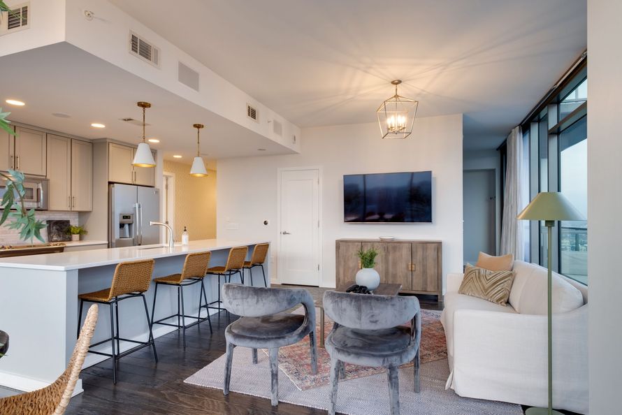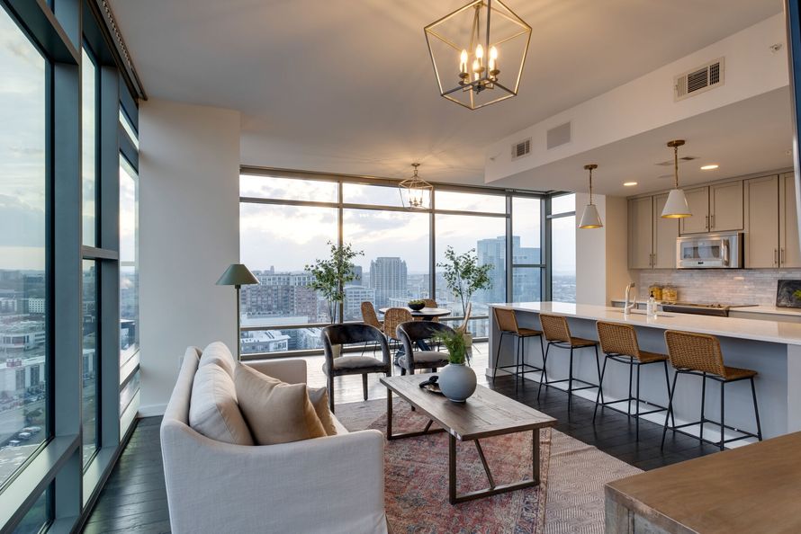 TOP FLOOR '13 line 2BD | 2BA with a versatile layout offering spacious living and flexible bedroom/office option(s). Enjoy breathtaking 180-degree views from Midtown to Gulch, with stunning sunsets over Midtown and a reflective cityscape facing the Gulch from one of two balconies. Includes 2...