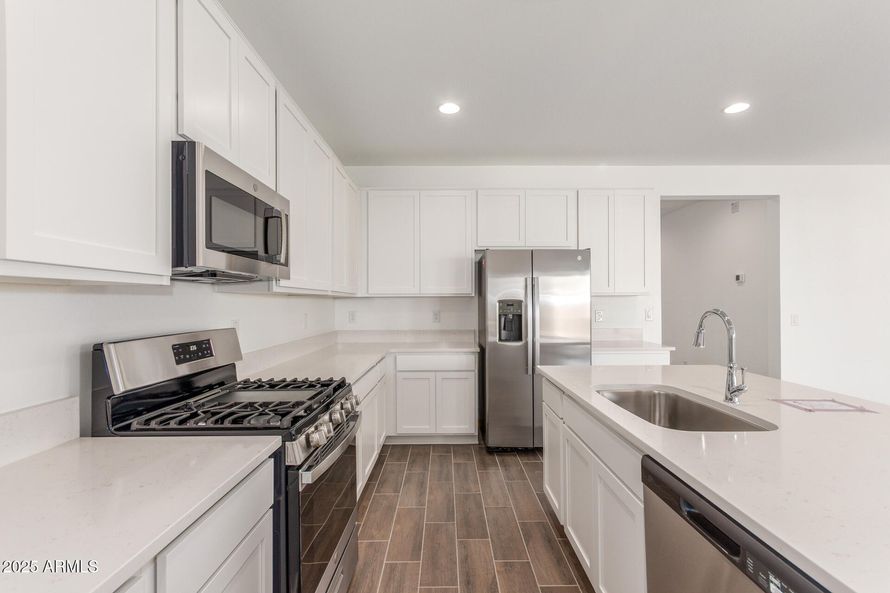 The stunning Slate plan opens with two bedrooms flanking a full hall bath. Beyond the entry, you'll find an open layout offering a dining nook, a great room with access to an inviting covered patio, and a kitchen with a center island, walk-in pantry and abundant cabinetry. The primary suite is...
