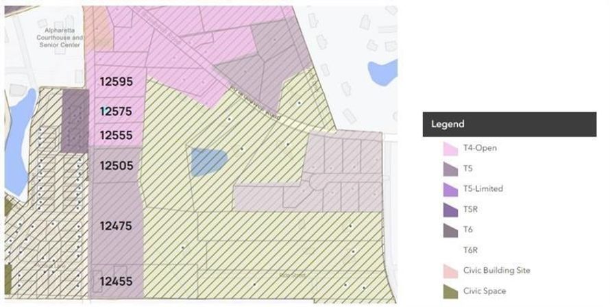 Downtown Crabapple across from existing residential/commercial and close to the proposed Mayfield District. Zoned T4 Open: mixed use, residential, commercial [T4 by definition: Mixed uses including Residential, Office, and Commercial. Residential may have a wide range of building types: single,...