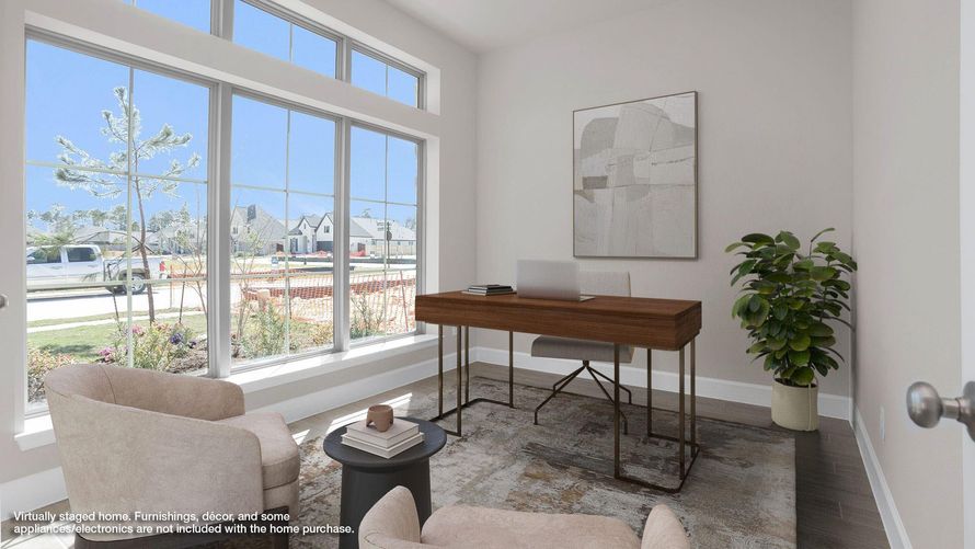 Welcoming front porch opens into an extended entryway. French doors open into the private home office. Down the hallway, you will find the secondary bedrooms, each featuring walk-in closets and a shared full bathroom. Adjacent to the hallway, French doors open into the inviting game room, complete...