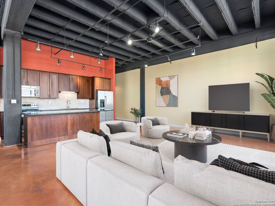 Amazing NEW PRICE for this spacious and light-filled condo at The South End Lofts! Wow-what a view of the San Antonio skyline from this wonderful corner unit. Spacious with stained concrete floors, 12' ceilings, track lighting, and a wall of windows with expansive views. Granite counters, brand new...