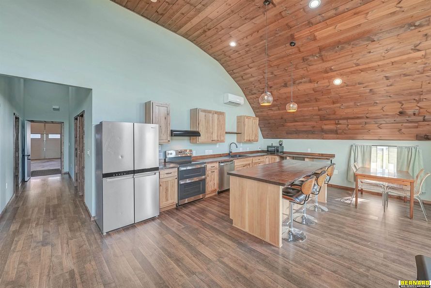 Discover country living at its best on this 14.39-ac property featuring versatile, beautifully finished Quonset home, barn, grain bins and acres of grass. Home was thoughtfully designed and completed in 2022, inside this 1950 Quonset, providing a warm and inviting home on one end while offering...