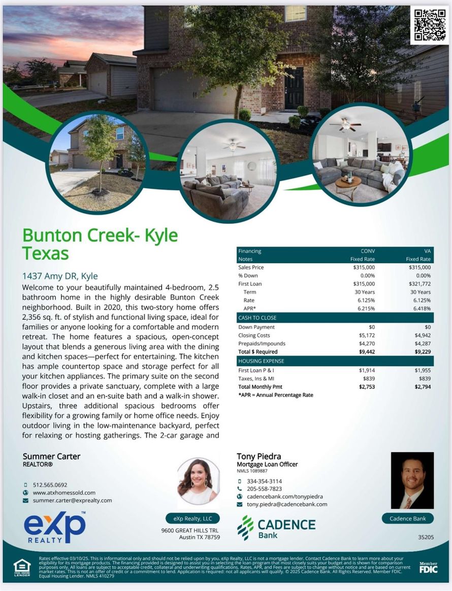 First-Time Homebuyer Opportunity – 0% Down & 5.75% Interest Rate Available! Dreaming of homeownership? This beautifully maintained 4-bedroom, 2.5-bathroom home in Bunton Creek could be the perfect place to start your next chapter! With special financing available through Cadence Bank — 0% down and...