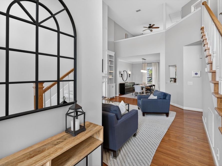 Welcome to your Brentwood dream home in Courtside at Southern Woods! This charming residence blends classic style with modern accents in all the right places. The open living room showcases a soaring ceiling and a board-and-batten fireplace surround complemented by custom built-in cabinetry. The...