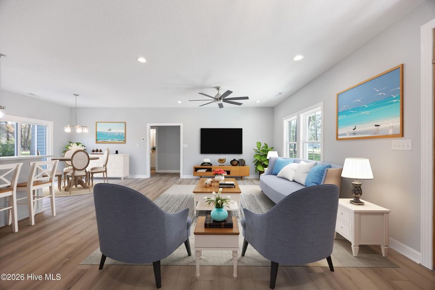 Move-in ready new construction! This beautiful 3-bedroom, 2-bath, PLUS FROG, home offers modern style and design throughout. The open-concept floor plan features a spacious living room that flows seamlessly into the kitchen. The kitchen is equipped with stainless steel appliances (INCLUDING...