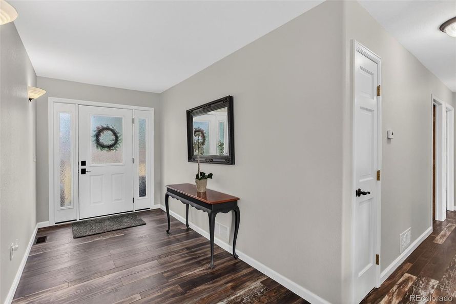 Welcome to this tastefully updated ranch-style home in Hunters Cove Subdivision in Mead where comfort, functionality, and country living blend seamlessly on 2 fully fenced acres. Step onto the inviting front porch with low-maintenance trex decking and into a light-filled open floor plan featuring...