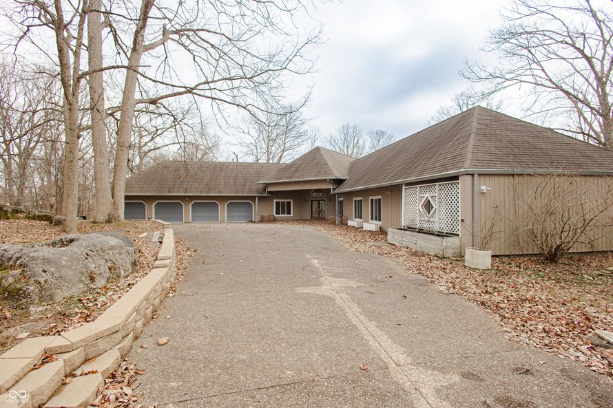 Nestled on five private wooded acres within the gated Eagle Pointe Resort at Lake Monroe in Bloomington near IU. This home stands as the communities only standalone custom residence. It is free from Village HOA fees and restrictions. Yet it enjoys full access to the championship 18 hole golf course...
