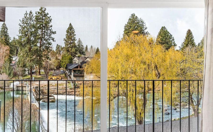 Awesome Deschutes River views from this second floor Condo. Currently a Short Term Rental. One ''lockoff'' bedroom, 2 full bathrooms, plus a queen murphy bed. Plenty of storage, generous kitchen with an peninsula and granite countertops. West side location, walking distance to downtown, river...