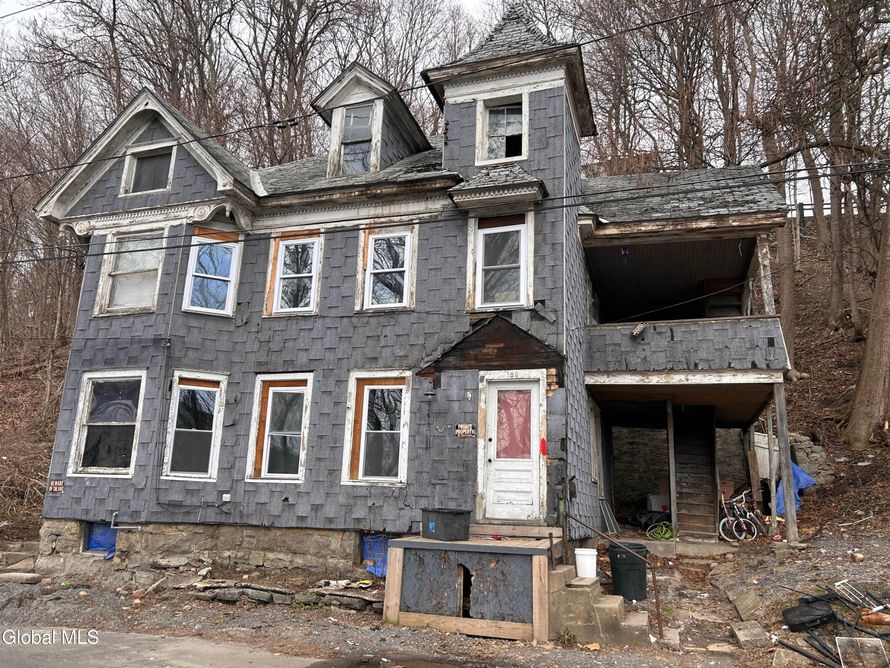 Unique two family in need of rehab. Three car garage is part of the property.