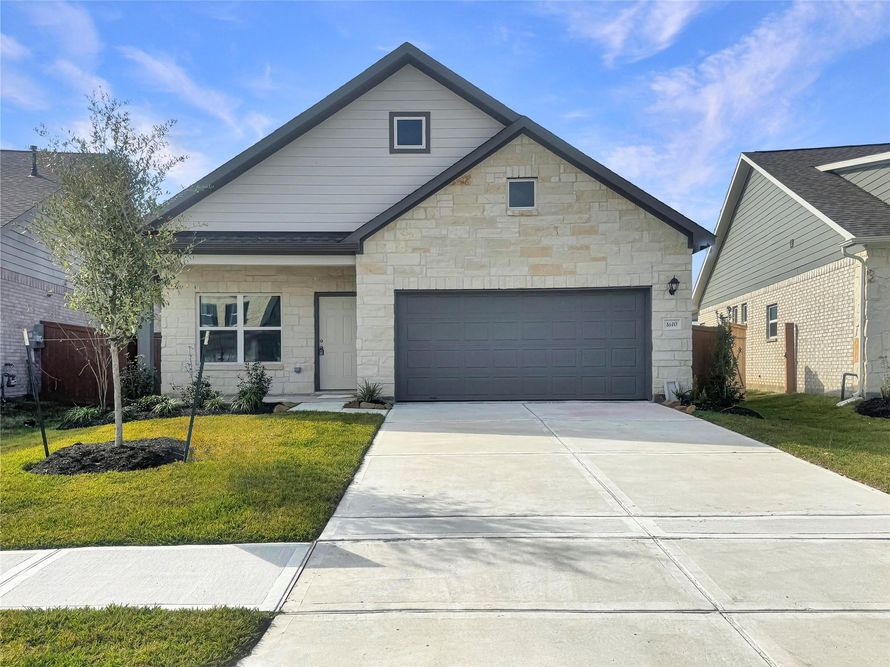 Welcome to this charming 1-story new home in Dayton, TX, the Piedmont plan by Smith Douglas Homes. Featuring 3 bedrooms, 2 bathrooms, and a versatile study, the home boasts a kitchen with 36" cabinets with crown molding, granite countertops, and a tile backsplash. The primary suite includes a tray...
