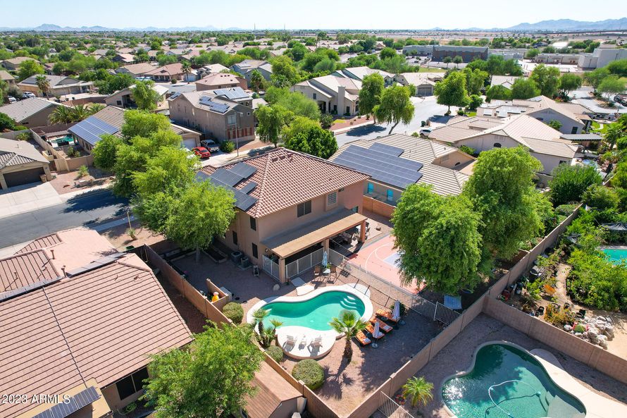 This magnificently located 5-bedroom, 2.5-bathroom with Pool and Basketball Court in Goodyear! The residence spans an impressive 3,043 square feet, offering luxurious features. New Paint Upstairs. Located in a sought-after neighborhood near I-10 and 303! The heart of this residence is undoubtedly...