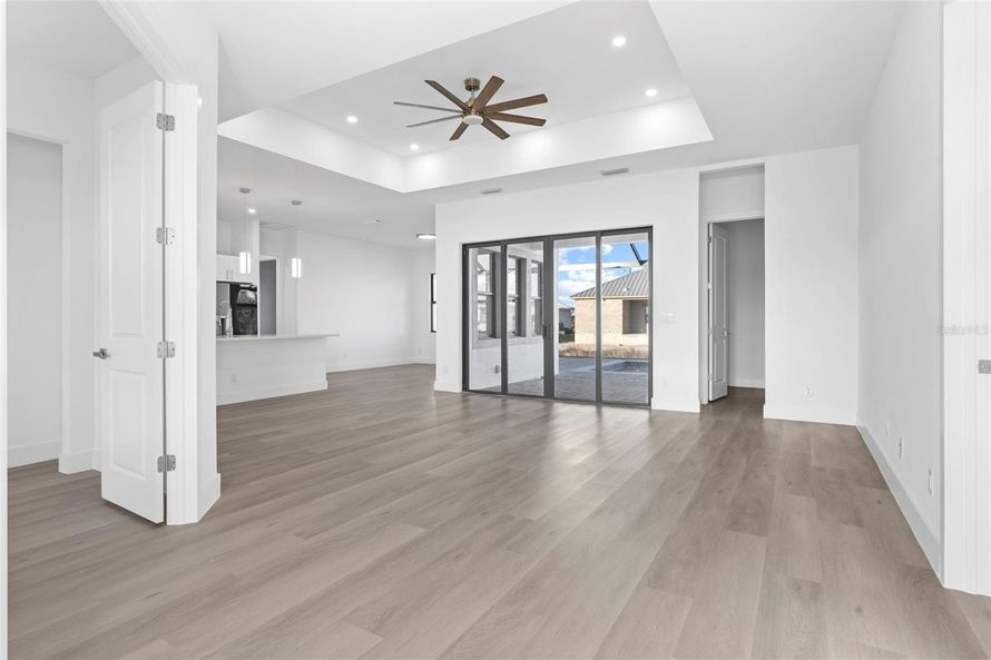Welcome to your dream home in the heart of Punta Gorda, nestled within a serene neighborhood that perfectly balances tranquility and convenience. This stunning 3-bedroom plus den, 2.5-bath residence is an architectural gem, featuring 11-foot ceilings, 8-foot tall doors, and wood-like tile flooring...