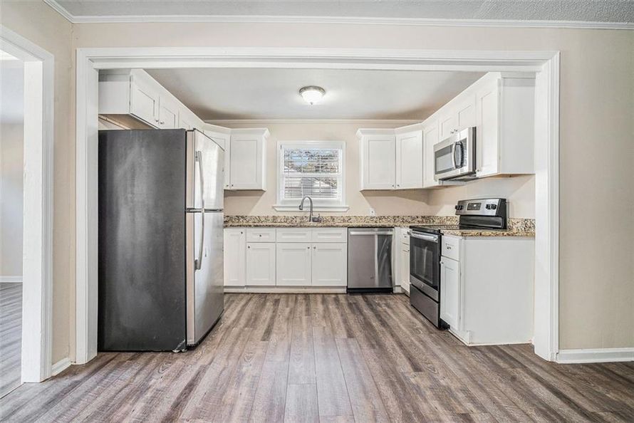 Lovely 4-bedroom, 2-bath ranch-style home featuring a detached 2-car carport. The spacious common areas showcase durable vinyl wood floors, while the bedrooms offer cozy carpet. The kitchen is a highlight, with granite countertops, stainless steel appliances, and white cabinetry. A perfect...