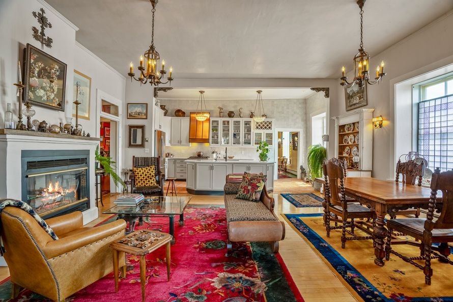BEST RESIDENTIAL/COMMERCIAL LOCATION IN LAS VEGAS, NM Zoned R2 + C2 on the Historic Plaza. Exceptional commercial and residential opportunity with 57 ft of glass retail display frontage, 3,000 sq. ft of retail space, and 5,000+ sq.ft. of finished residential with tree covered views of the Historic...
