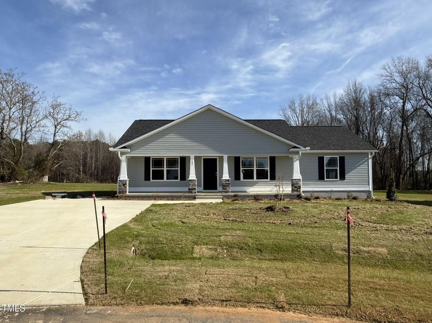 Lovely ranch plan with rocking chair front porch! Cozy family room is open to the eat in kitchen that offers SS appliances, granite, tile backsplash and FRIDGE! Split bedrooms. Owner's suite with a walk-in closet and dual vanity. Two additional bedrooms share a full bathroom. Patio in back is great...