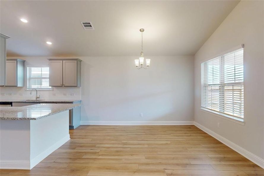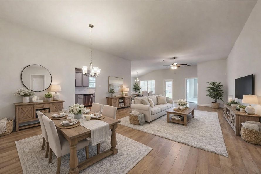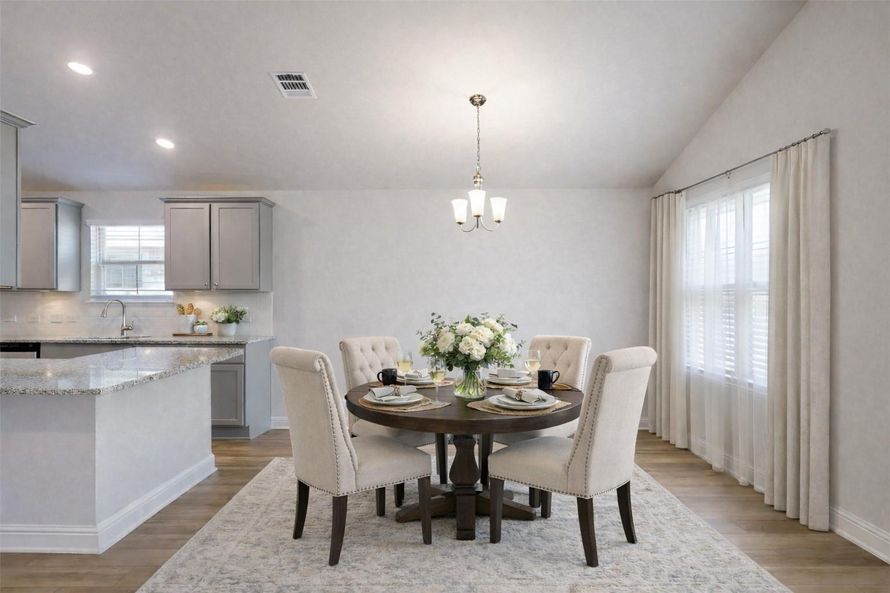 This 1,900 sq. ft., 3 bed, 2 bath home on a 50’ lot features a four-sided brick exterior, luxury vinyl plank flooring, granite countertops, tray ceilings in the primary bedroom, and stainless steel Frigidaire appliances. Enjoy a formal dining room, breakfast area, covered patio, big shower, and...