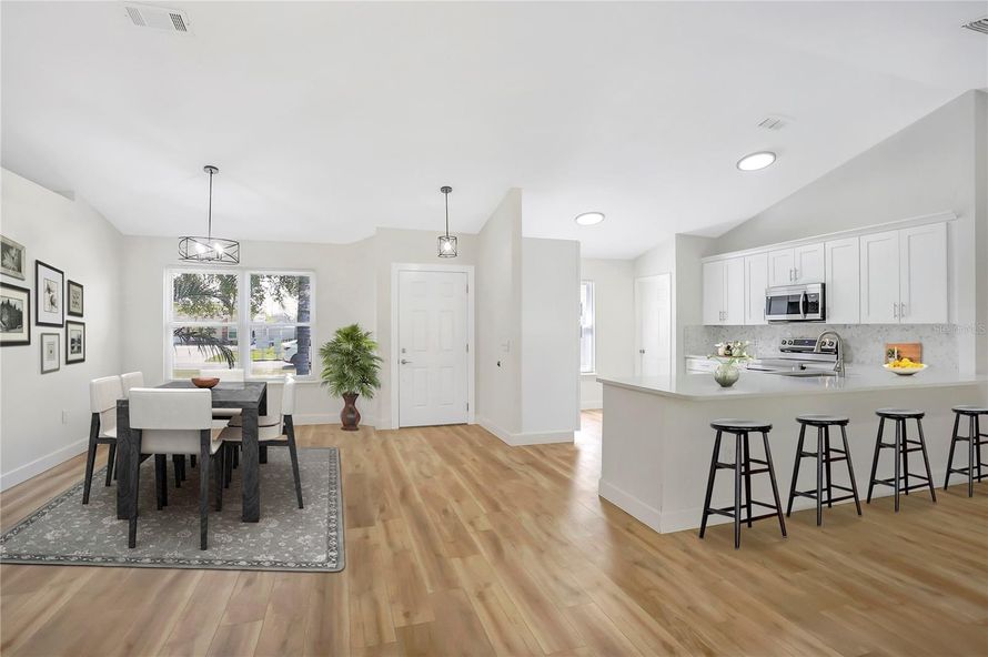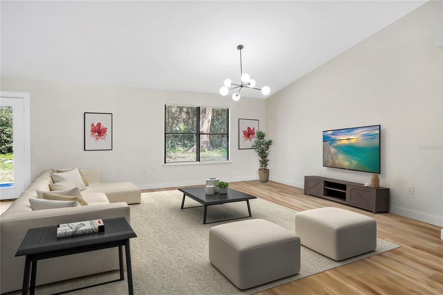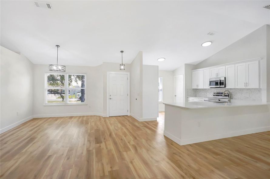 One or more photo(s) has been virtually staged. BACK ON MARKET WITH A NEW PRICE! This fully renovated Deltona home is a perfect blend of modern elegance and comfort. The open floor plan is enhanced by luxury vinyl flooring throughout, creating a seamless and designer look. A custom-designed kitchen...