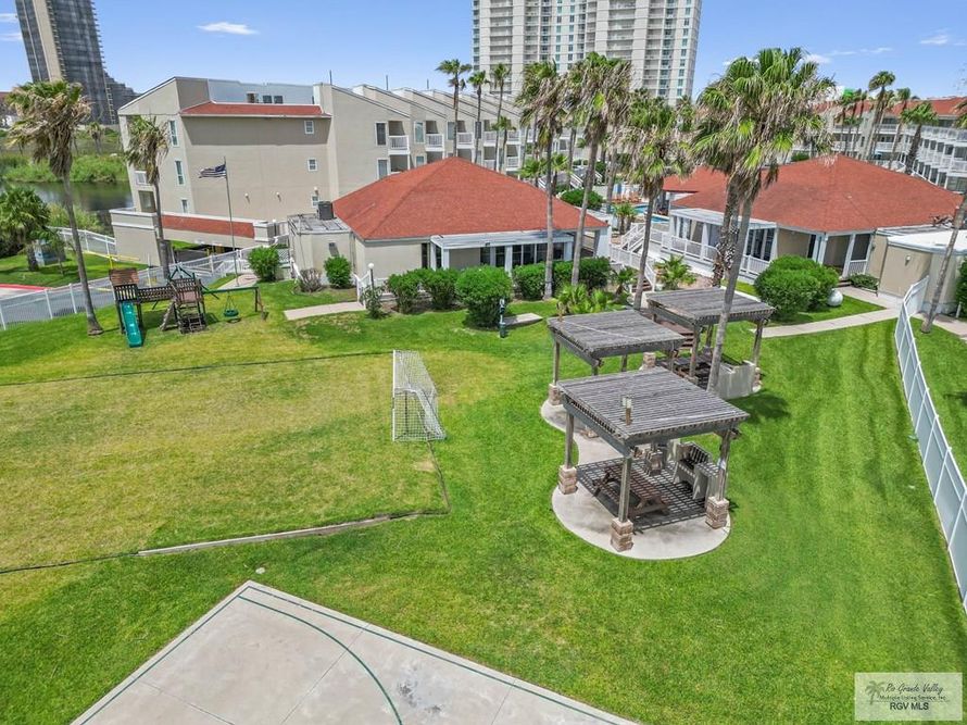 This lovely Unit is nicely furnished with great views. Location is easy to access on and off the causeway and walking distance to some great eateries. They share a walk way with Beach Water Park. Amenities include covered parking, gated, Pool and Hot Tub, Play room and Play ground, Gym, Grilling...