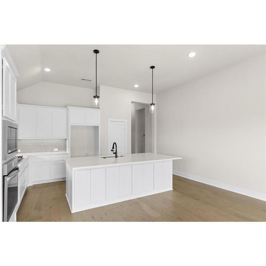 MLS# 20747071 - Built by First Texas Homes - Ready Now! ~ Single-story home with an open floor plan boasting numerous upscale upgrades including built-in appliances, quartz countertops, and hardwood floors throughout. Sliding glass doors open to a covered patio, offering serene greenbelt views. The...