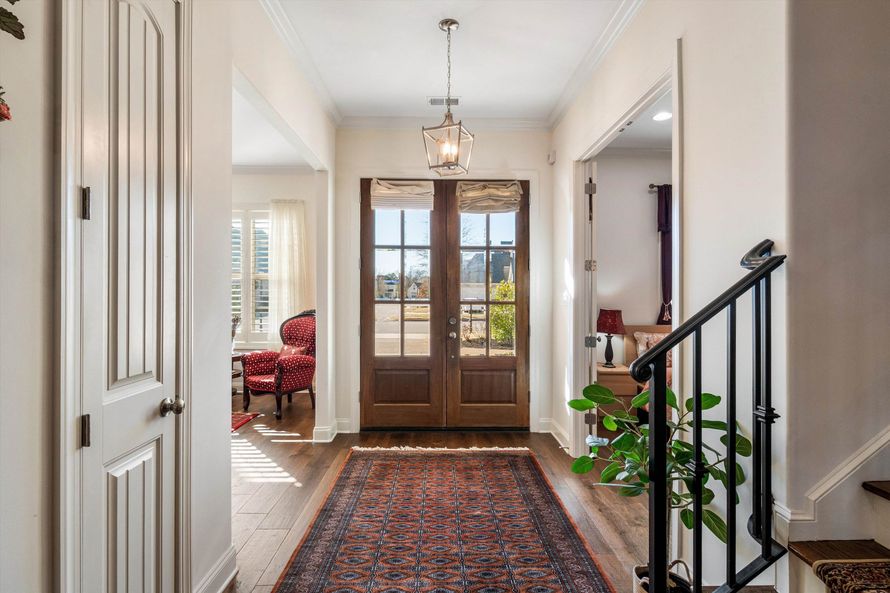 Beautiful GATED Collierville gem! Inviting entry w/ hrdwd leads to LR space that could also serve as DR. French doors separate the 2nd bedroom down. Original design used this space as an office. Great room perfect for entertaining. Plantation shutters throughout. Gorgeous granite countertops gleam...