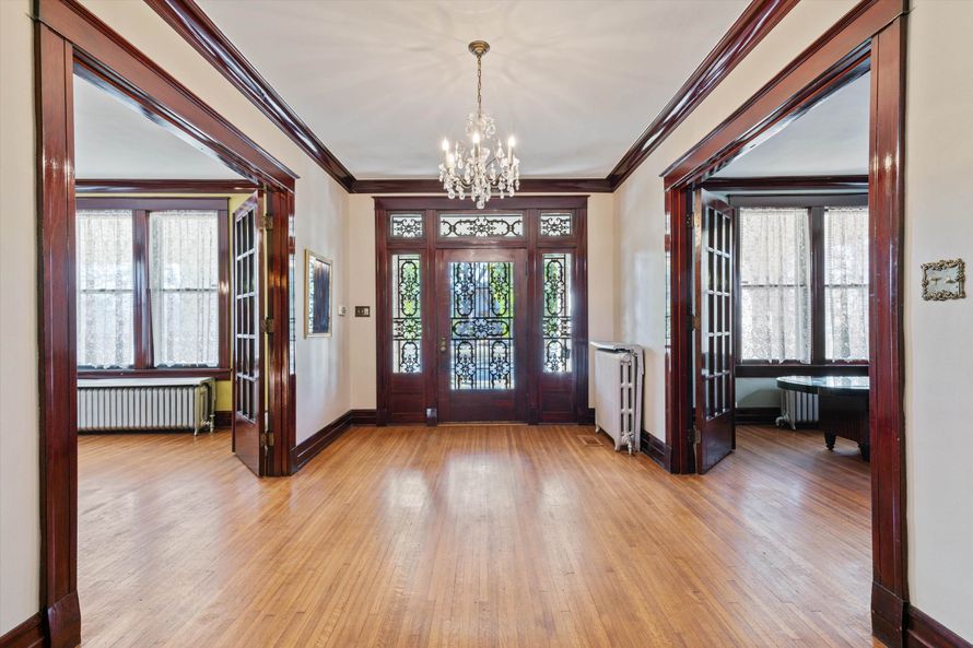 Firestone family home built circa 1900 with original chandeliers, natural moldings, and lovely hardwood floors. Primary bedroom up, and down. All the charm of yesteryear.