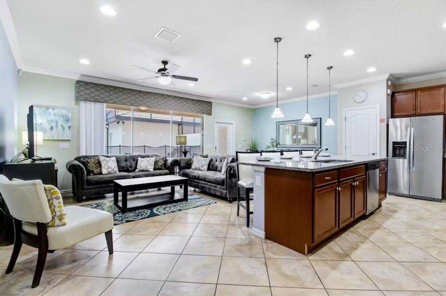 Less than 60 feet from the gorgeous pool and clubhouse, this is resort lstyle iving at its best! This spacious townhome is fully furnished and is perfectly located just steps away from 10,000 sq ft clubhouse, pool, lazy river and so much more! This home is a perfect place for family entertainment...
