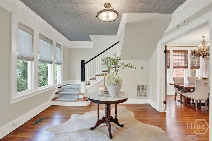 This beautifully renovated Ardsley Park home is beyond words. Attention to detail can be seen in every room. To the custom wallpaper on the ceiling in the foyer to the shiplap in the coffee/bar area, to the gorgeous original hardwood floors. All window blinds are custom throughout the home as well...