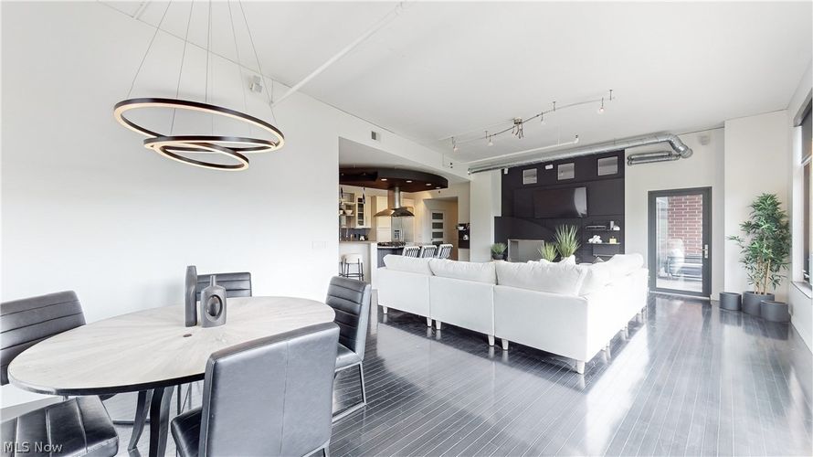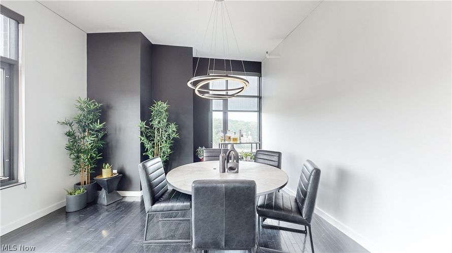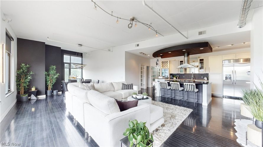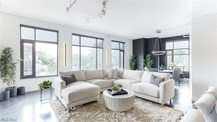 Incredibly updated with a modern touch. The entryway opens to the kitchen and great room with expansive views of downtown Akron and cascading sunlight. Throughout is a luxurious black maple wood flooring, white shaker doors with frosted glass, and incredible windows on this desirable corner unit....