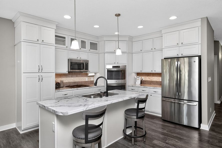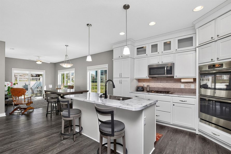 End lot, Ranch stand-alone townhome with zero steps! Quality energy-efficient design throughout. The kitchen features double wall ovens, gas cooktop, large island, stainless steel appliances, and extended cabinetry to 9’ ceilings. Durable, pet-friendly LVP flooring in main areas and baths. Spacious...