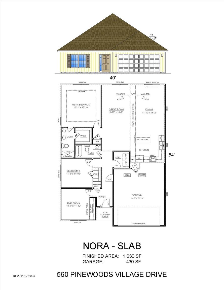 Framing to start early April 2026, with completion early summer. Discover your dream home with the Nora floorplan, a cozy cottage-style home nestled in the serene Pinewood Village Estates. This charming home offers a perfect blend of modern amenities and classic elegance. Just minutes from the...