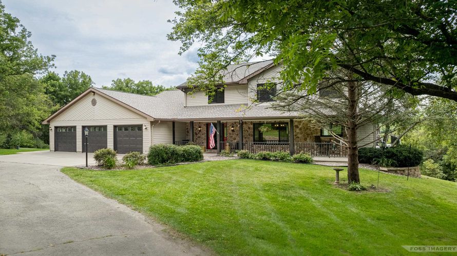 Breathtaking views surround this executive retreat on 15+ private acres just outside Mt. Horeb. The kitchen boasts a large island, dbl ovens, gas cooktop, breakfast bar, beverage fridge & walk-in pantry. A cozy family room opens to the deck, while the formal living rm centers on a gas fireplace. An...