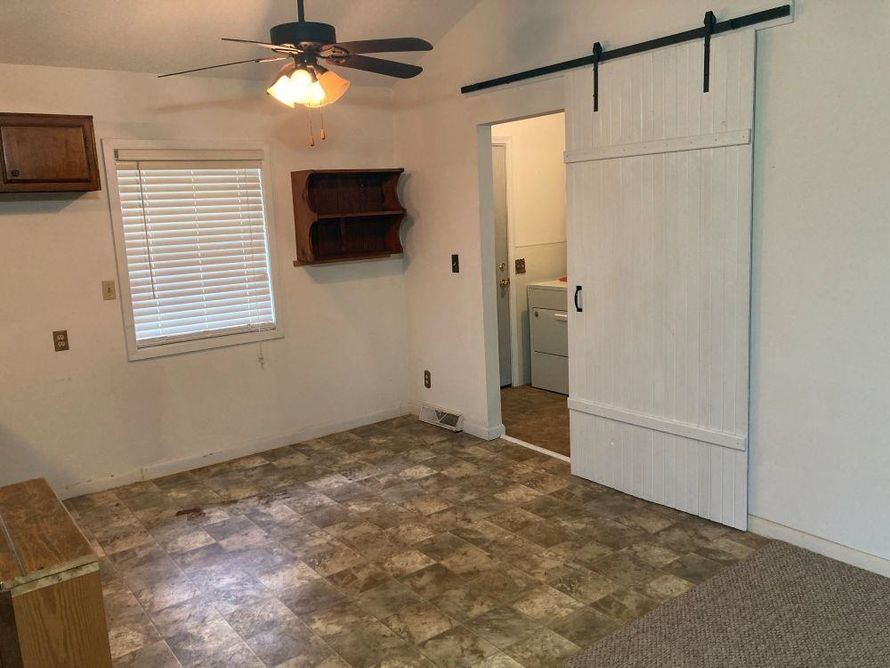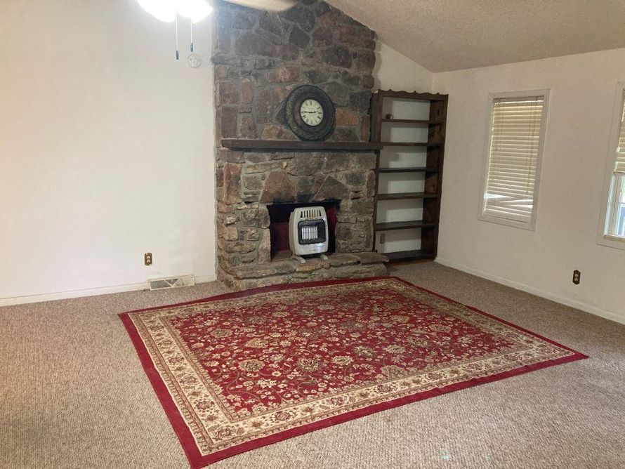 HOME on 2 LOTS w/approx 18'x24' detached WORKSHOP/STORAGE and 2nd driveway! 2 Bedroom, 1.5 Bath home. This home has a big open floor plan with vaulted ceilings, new ceiling fan w/lights & native stone fireplace with gas hookup. Large Mudroom off the carport is perfect for extra space for a freezer...