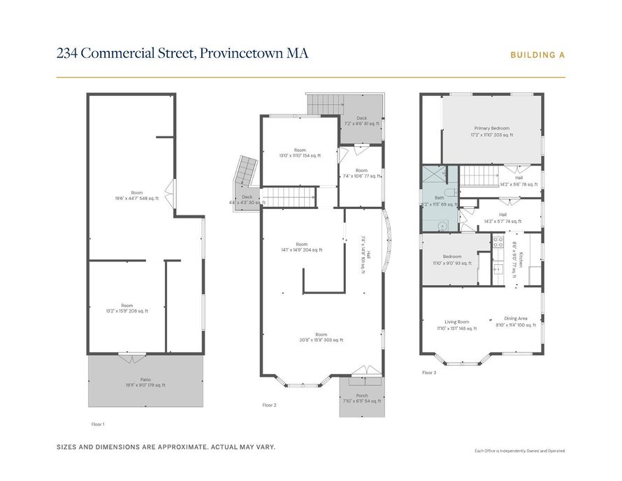 In the very center of Provincetown, this rare mixed-use cluster is composed of three separate buildings totaling 5,791+/- sq.ft. All provide commercial spaces, while two also include residential areas above, with three bedrooms across the upper levels. The front structure, dating to the 1870s,...