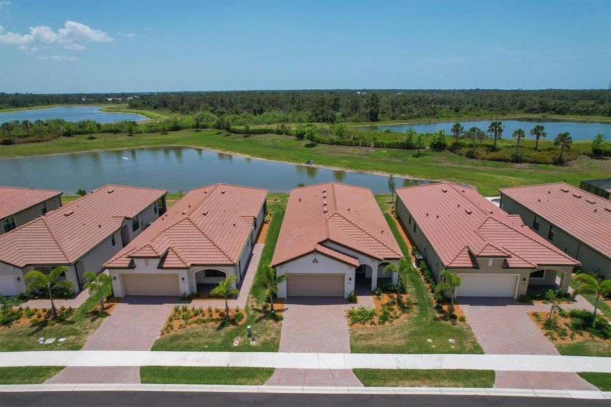 This home just built in 2022 and now available for quick move in. The popular MILAN floor plan 2BD/2BA/DEN/2CG with LAKE AND GREENSCAPE VIEWS, NO HOUSES BEHIND YOU!!! PLENTY OF ROOM TO ADD YOUR OWN PRIVATE POOL!! Open floor plan with tons of windows and light- bright and sunny with SOUTHWEST...