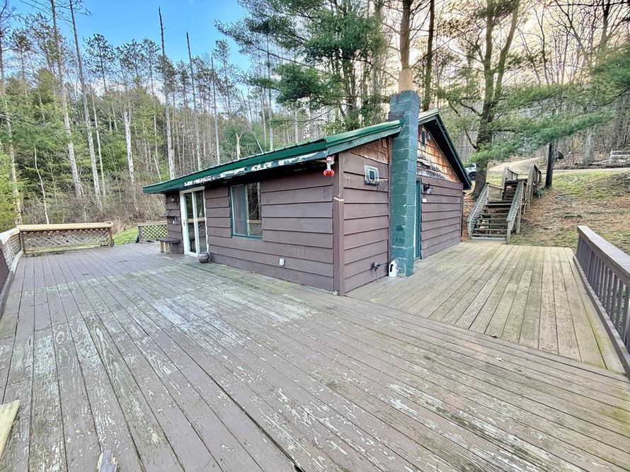 The first thing you'll notice here is the view and it's a good one!! The wrap-around porch is the perfect spot to see the hills across the river - a peaceful setting and exactly the kind of backdrop people are looking for when they want a camp! This cabin has 2 bedrooms, bathroom with stand up...