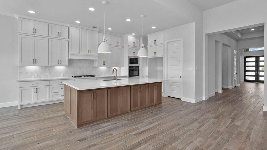 READY FOR MOVE-IN! Step off the front porch and enter the extended entryway, adorned with 12-foot coffered ceilings. French doors off the entry open into the home office. Just past the home office, you'll discover the game room, also accessible through French doors. The large living room features...