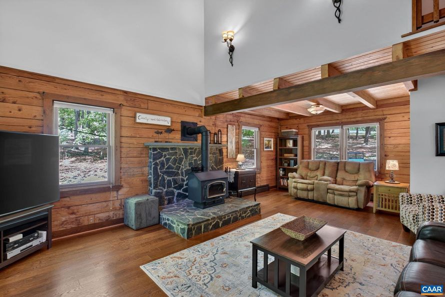 Tucked along the 14th green in Lake Monticello, this Cape Cod log home offers a rare blend of quiet country living and scenic golf course views on a private 0.68-acre lot. Start your mornings on the wraparound porch with coffee and birdsong, and wind down in the evenings as deer pass through the...